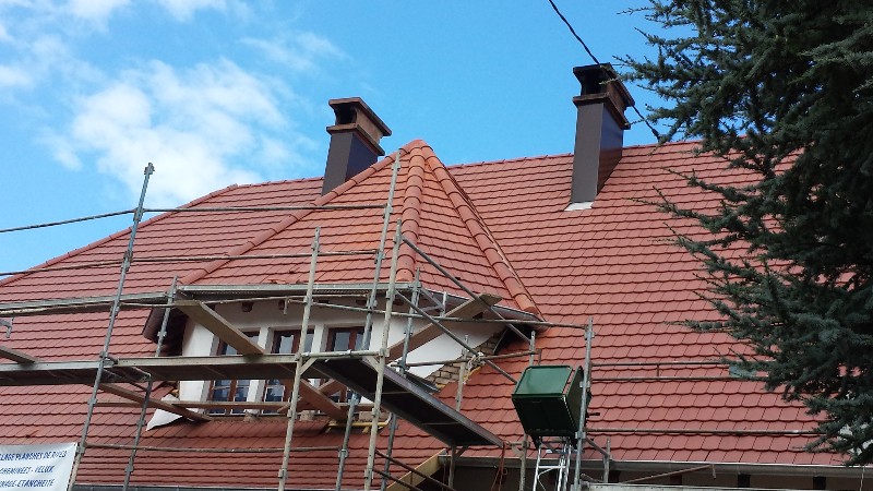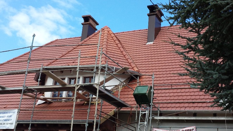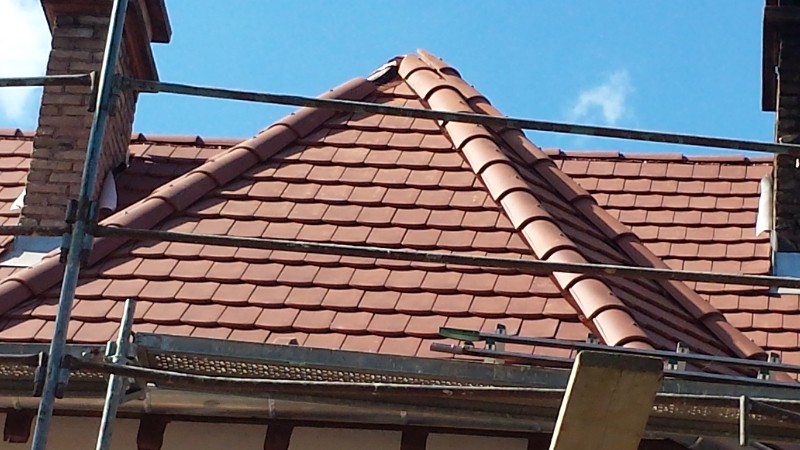 Réalisation d’une dépose de tuile alsaciennes Bieberschwantz suivi d’une pose d’écran de sous-toiture HPV pour un confort d’étanchéité.