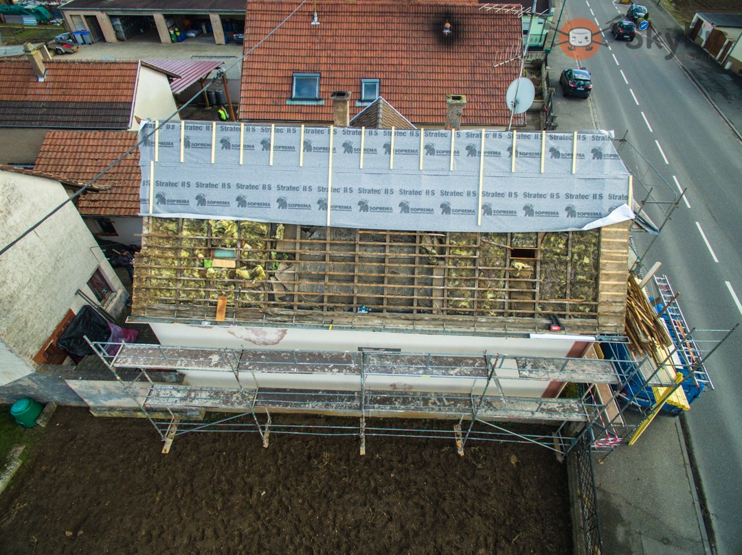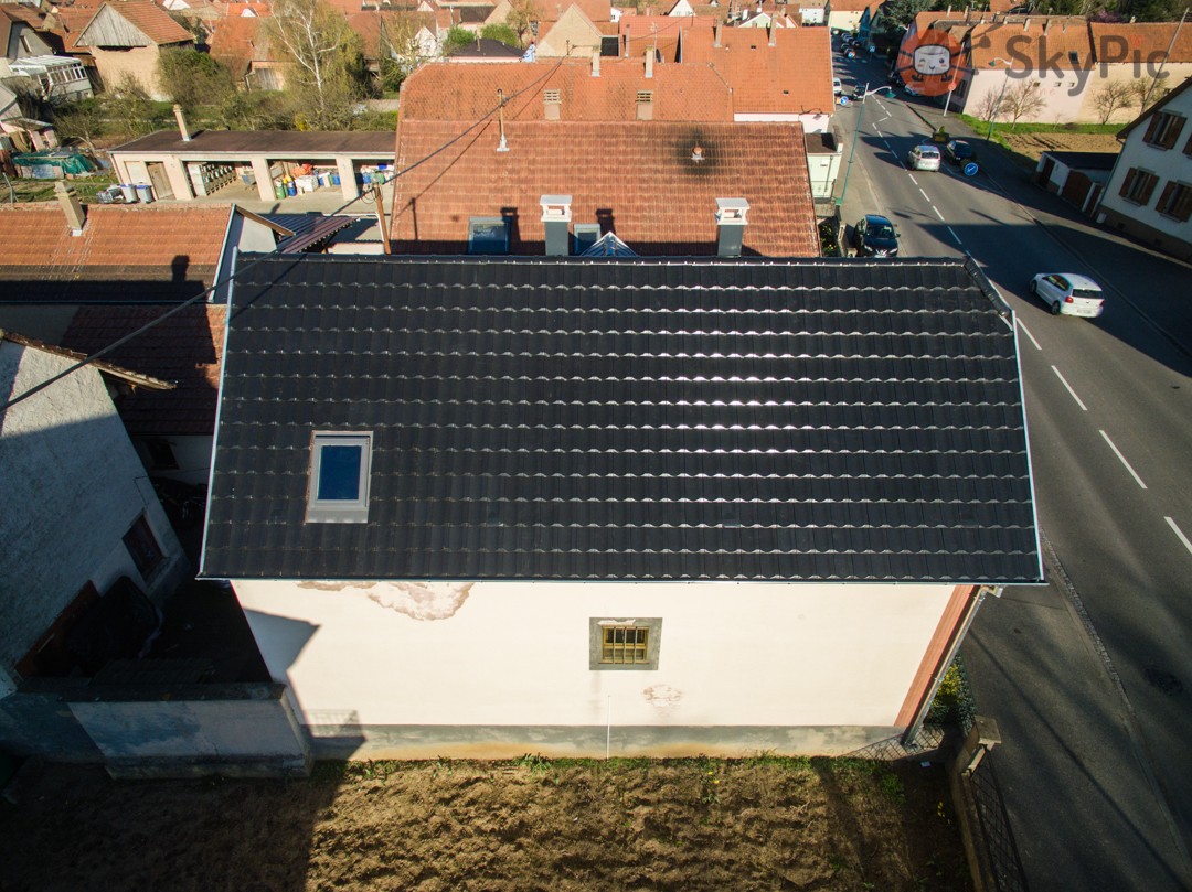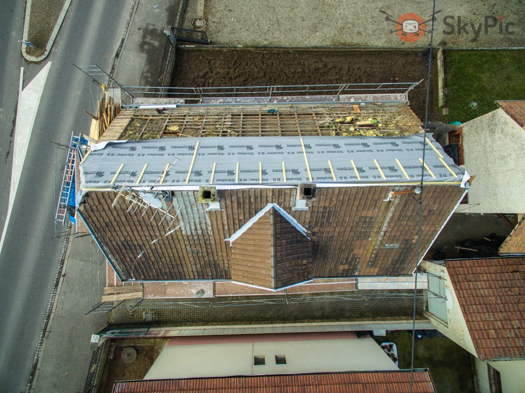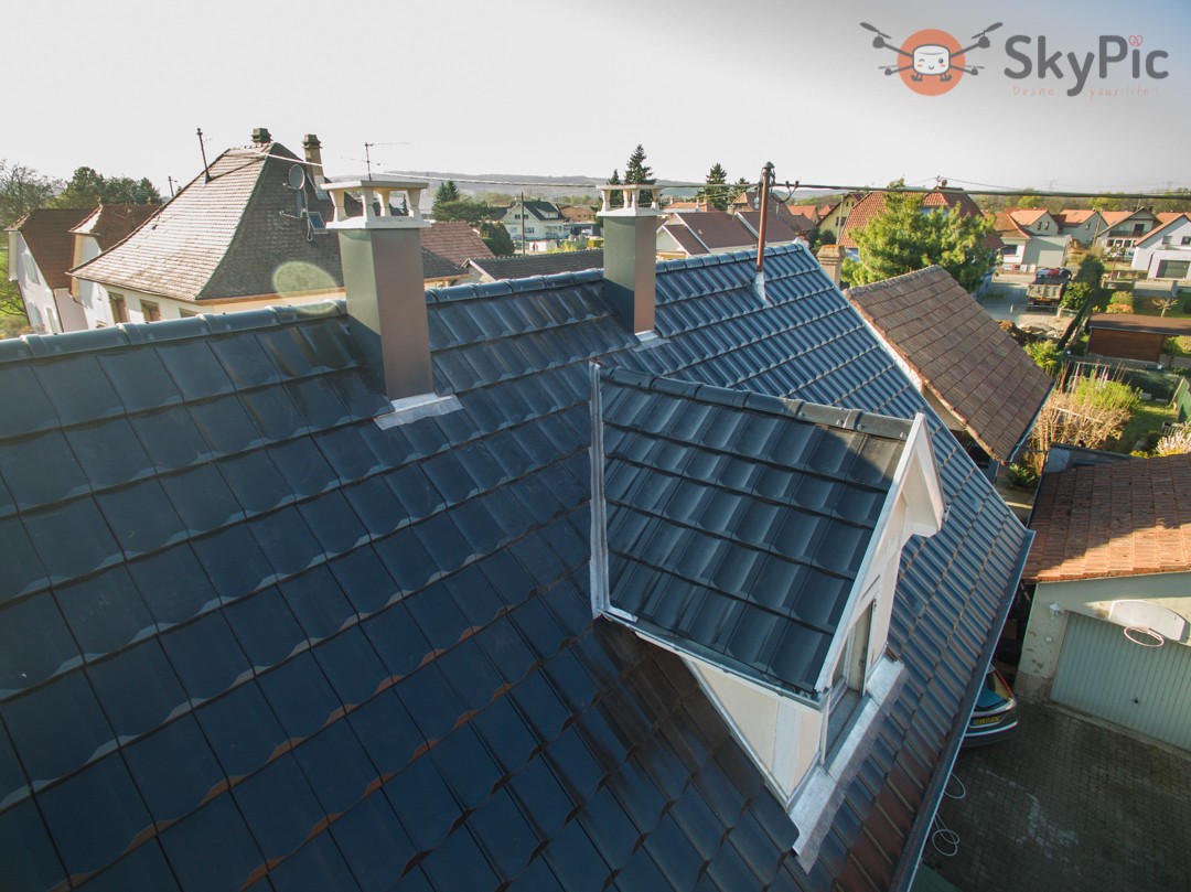 Rénovation de la toiture par de la tuiles JPV 2 anthracite et changement de la zinguerie par du zinc naturel.