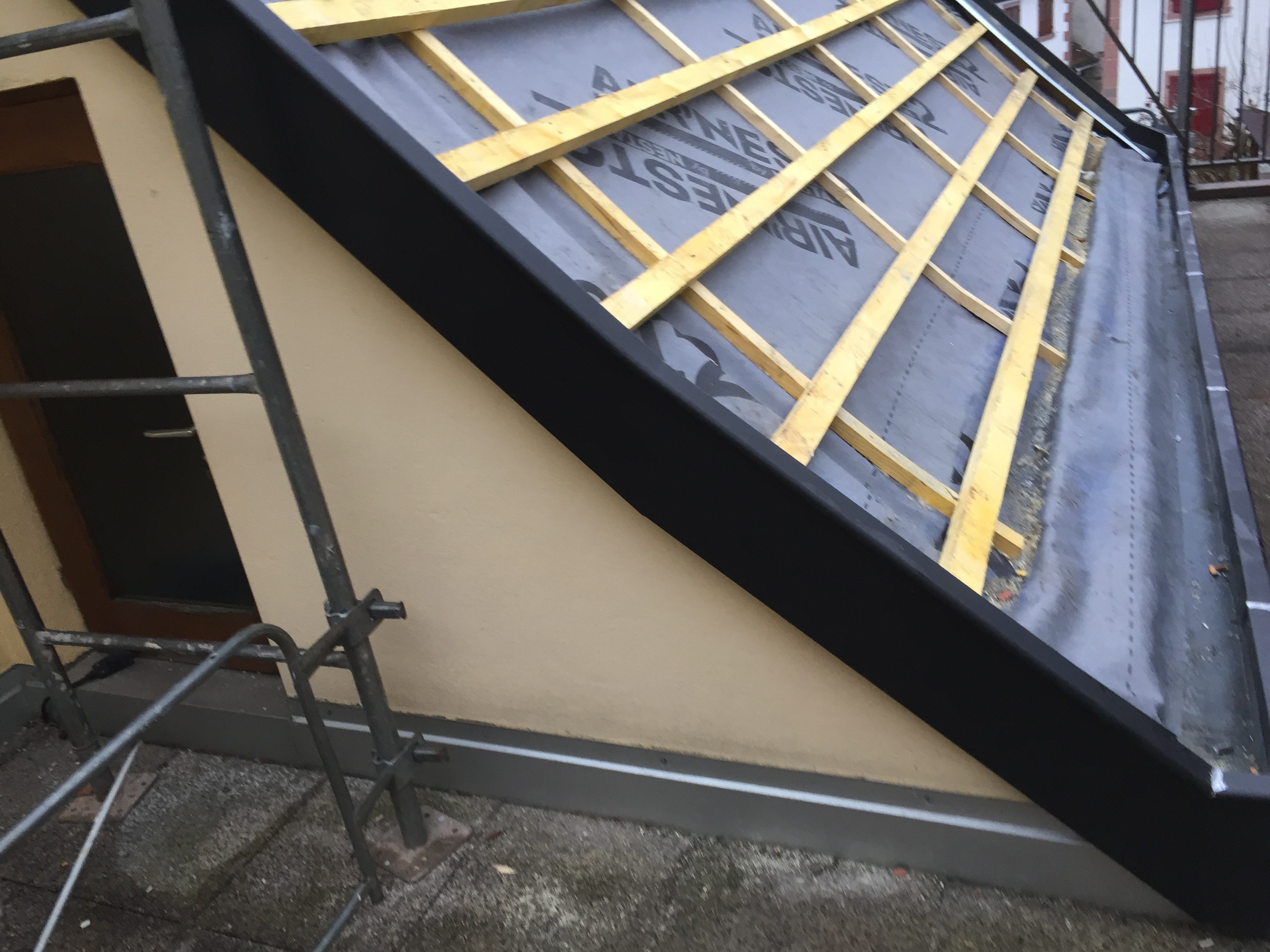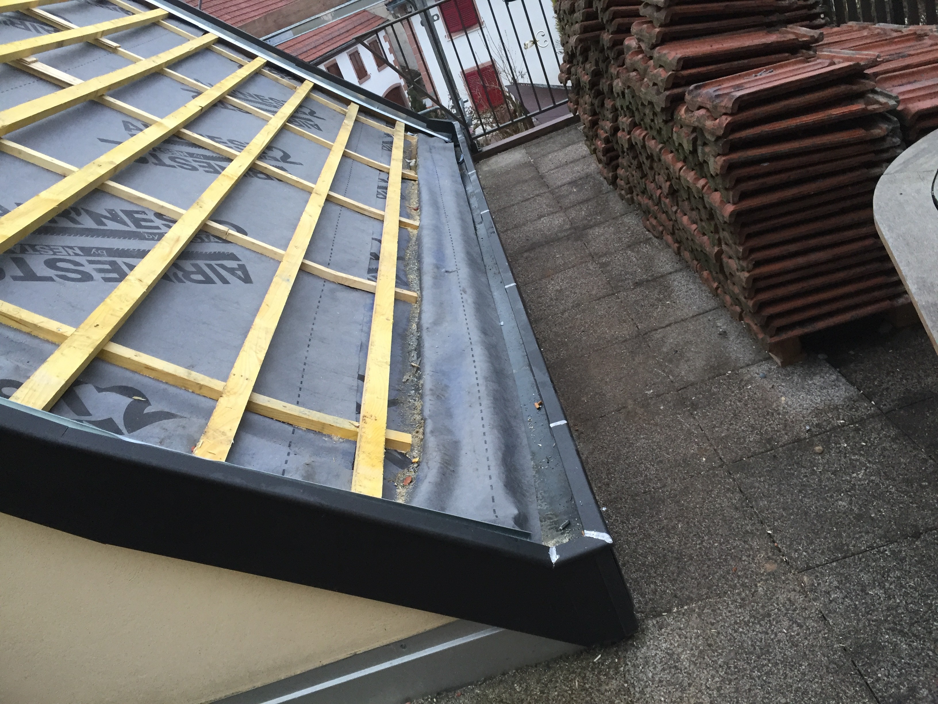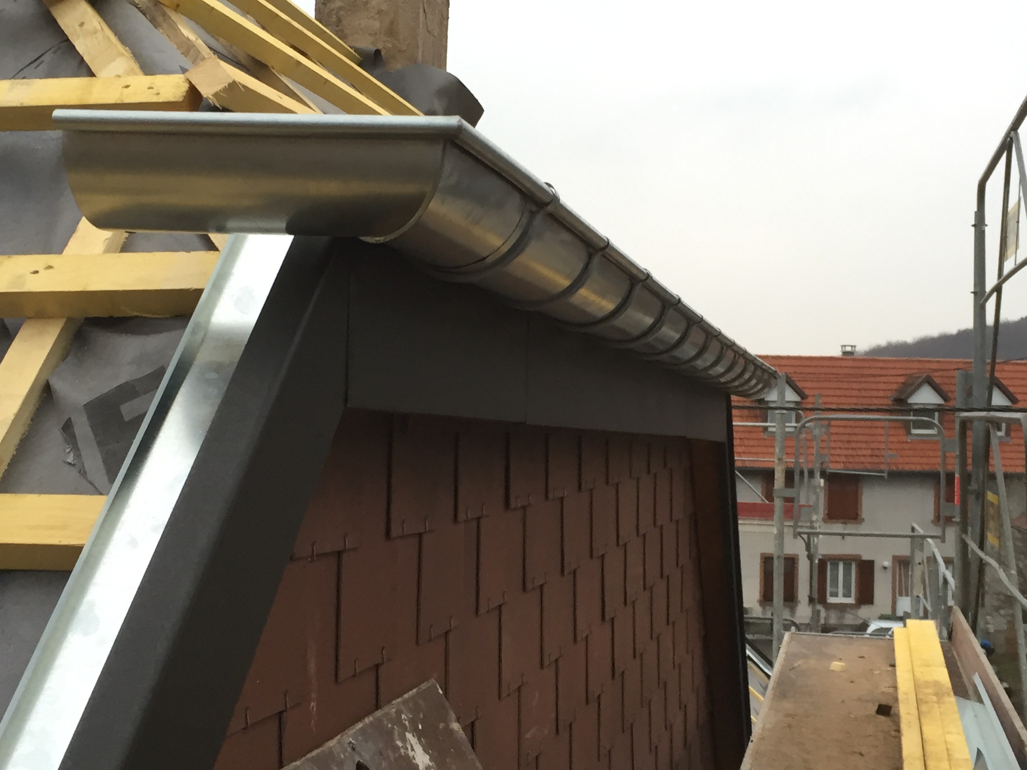 Remplacement de la zinguerie par du zing naturel et mise en place d’un bardage de couleur anthracite.
