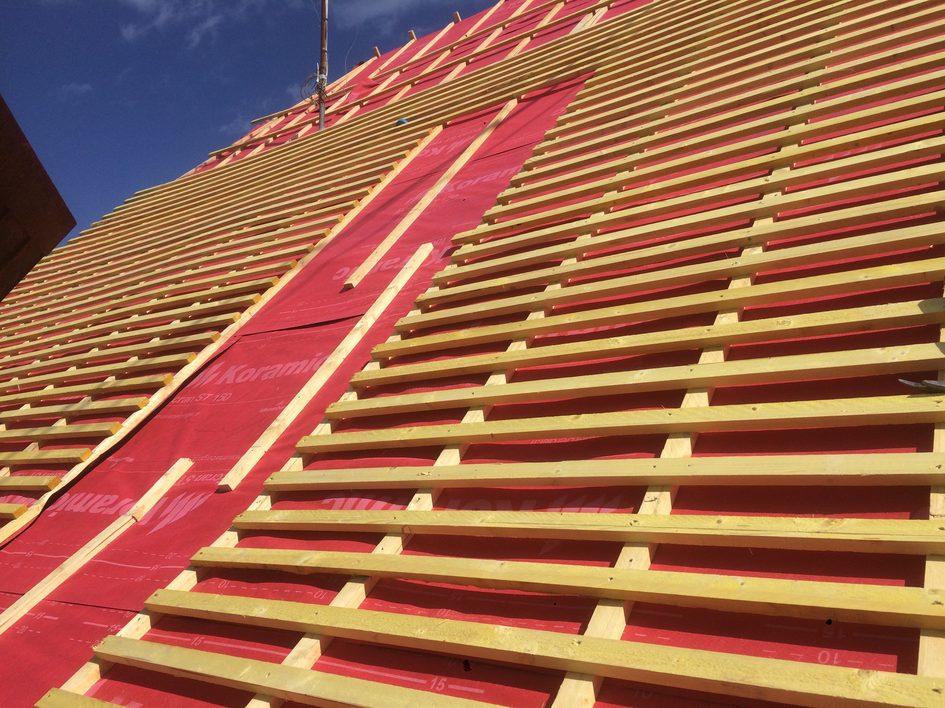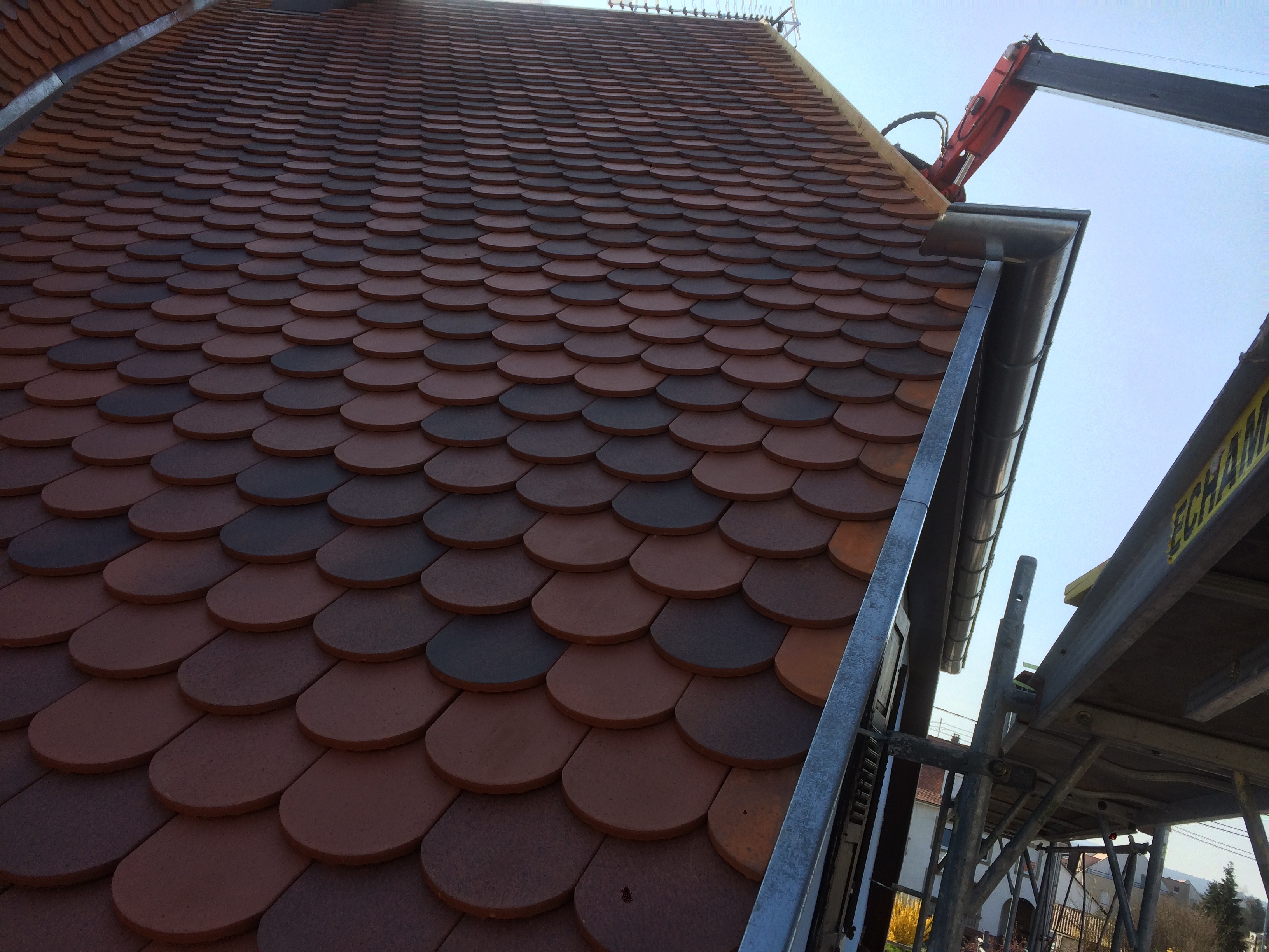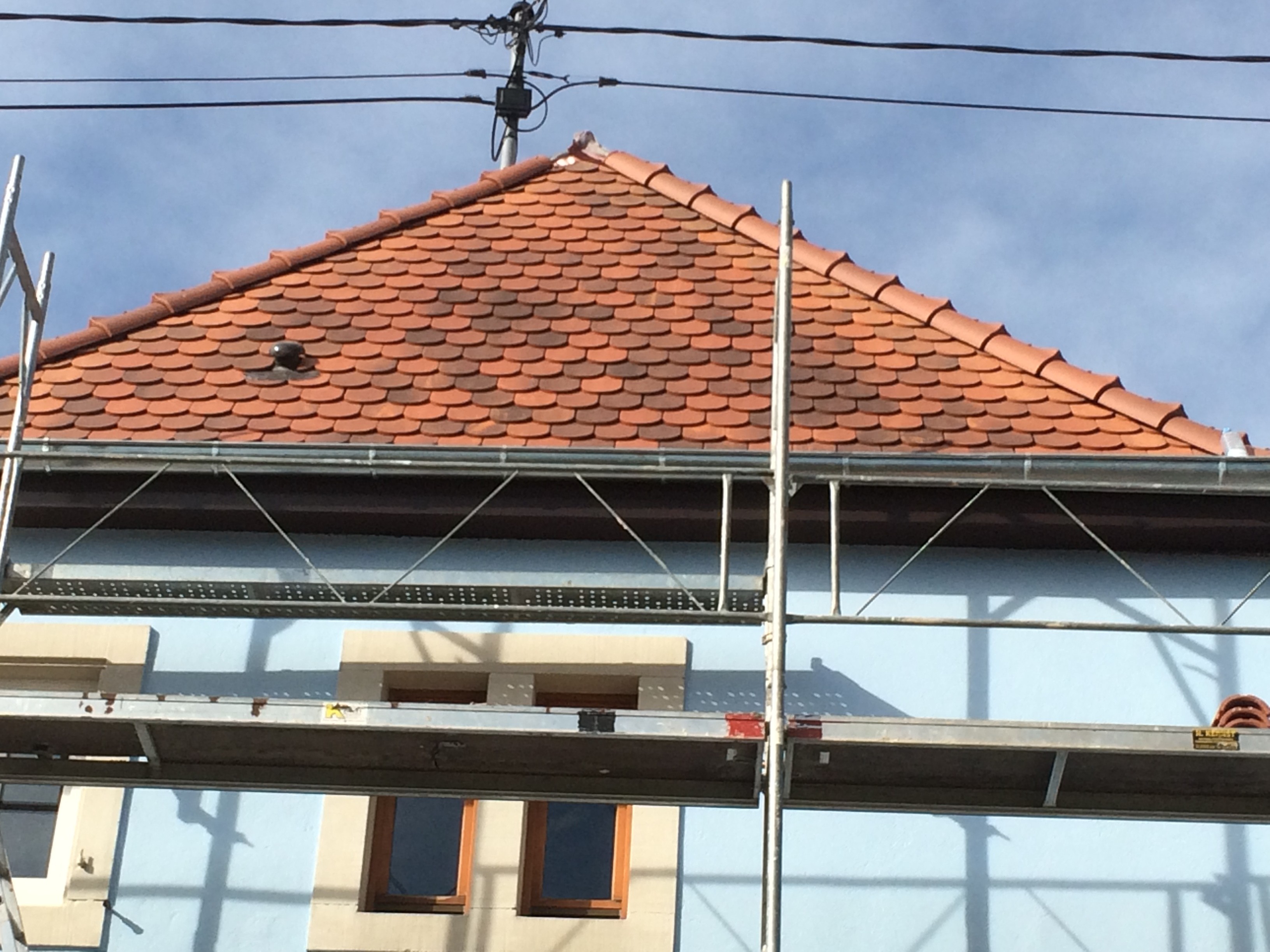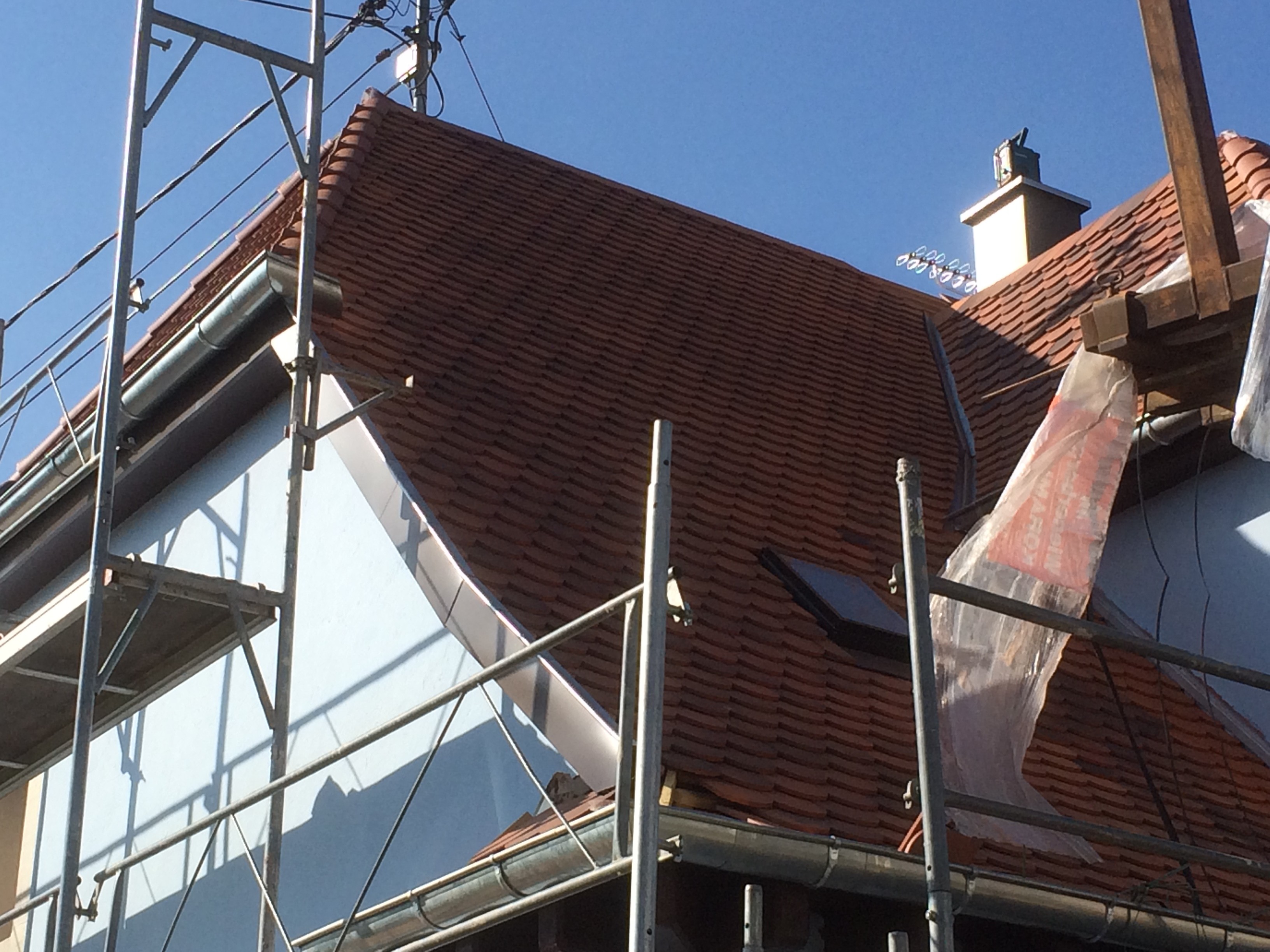 Ce chantier a été réalisé par CB Couverture pour une rénovation de toiture complète par de la tuiles plates nuancées avec mise en place d’un écran de sous-toiture.