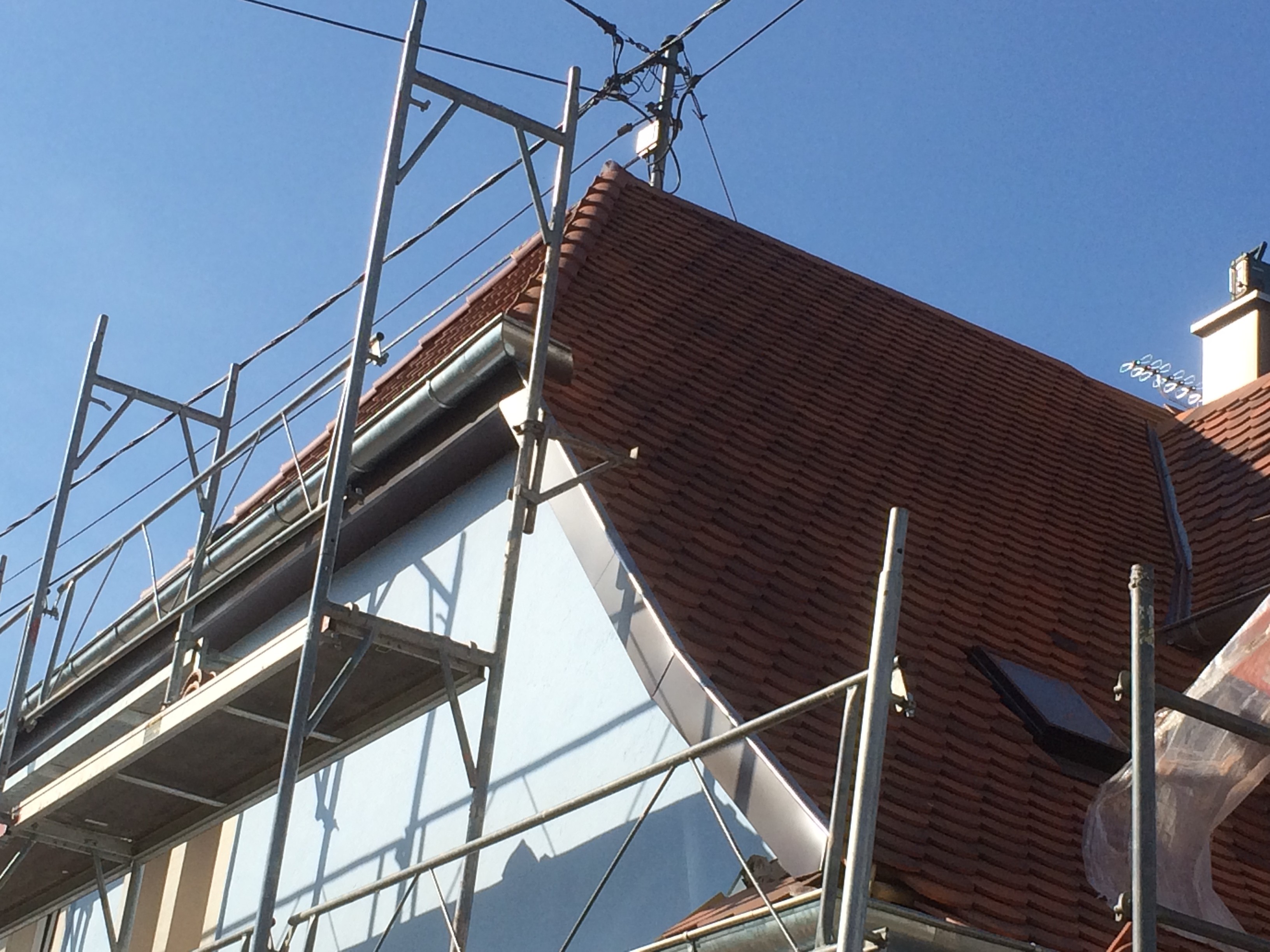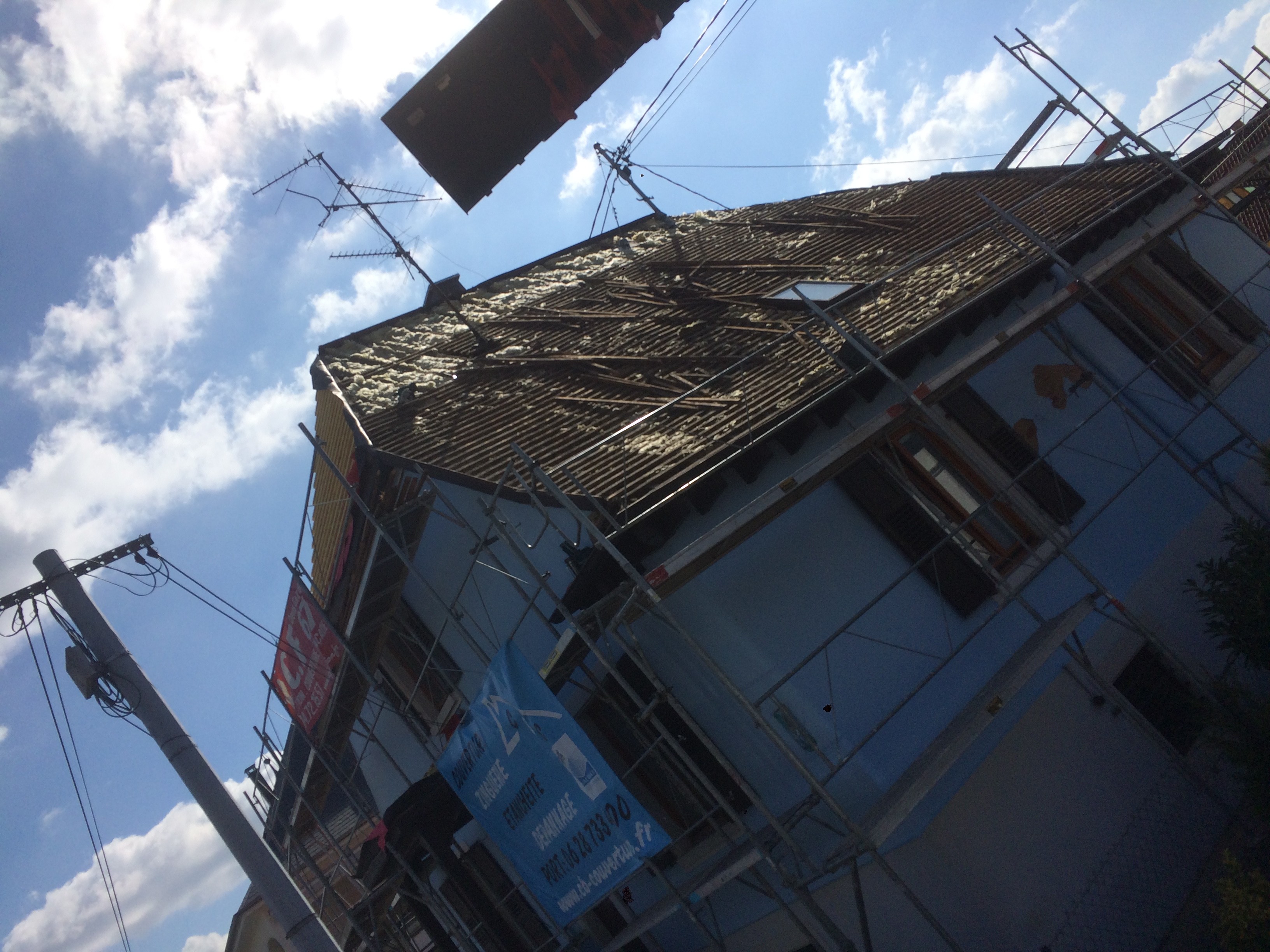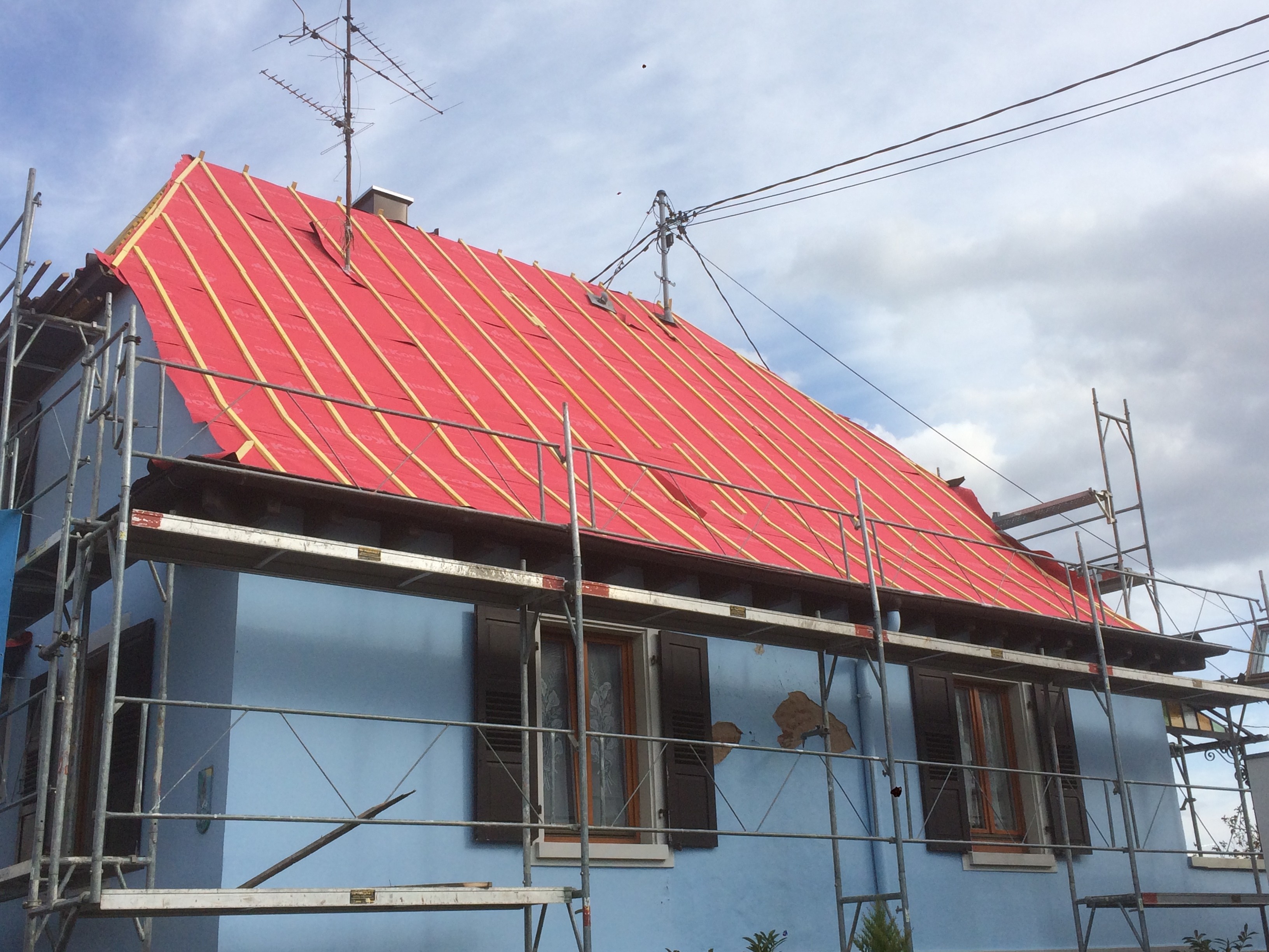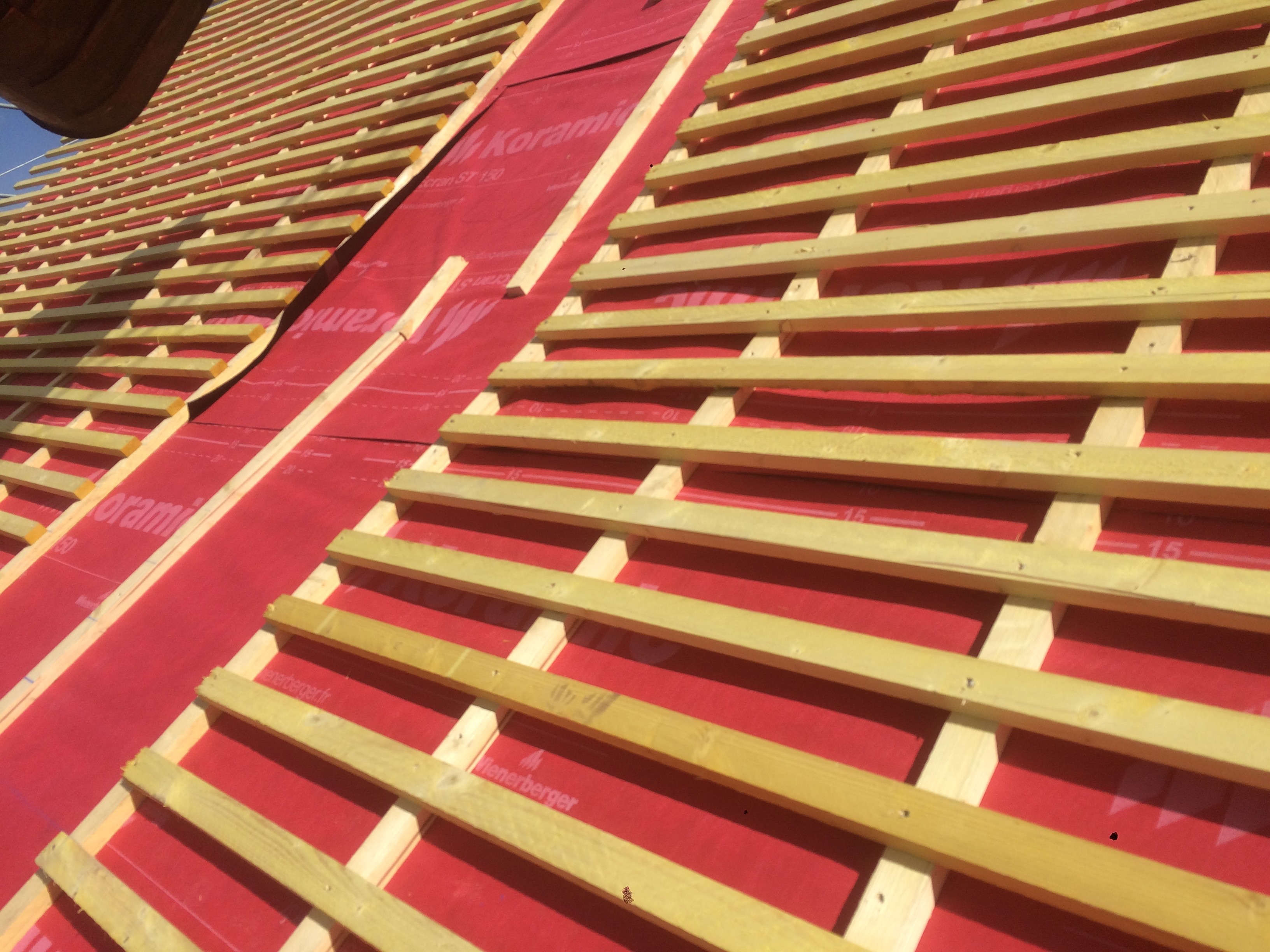 Ce chantier a été réalisé par CB Couverture pour une rénovation de toiture complète par de la tuiles plates nuancées avec mise en place d’un écran de sous-toiture.
