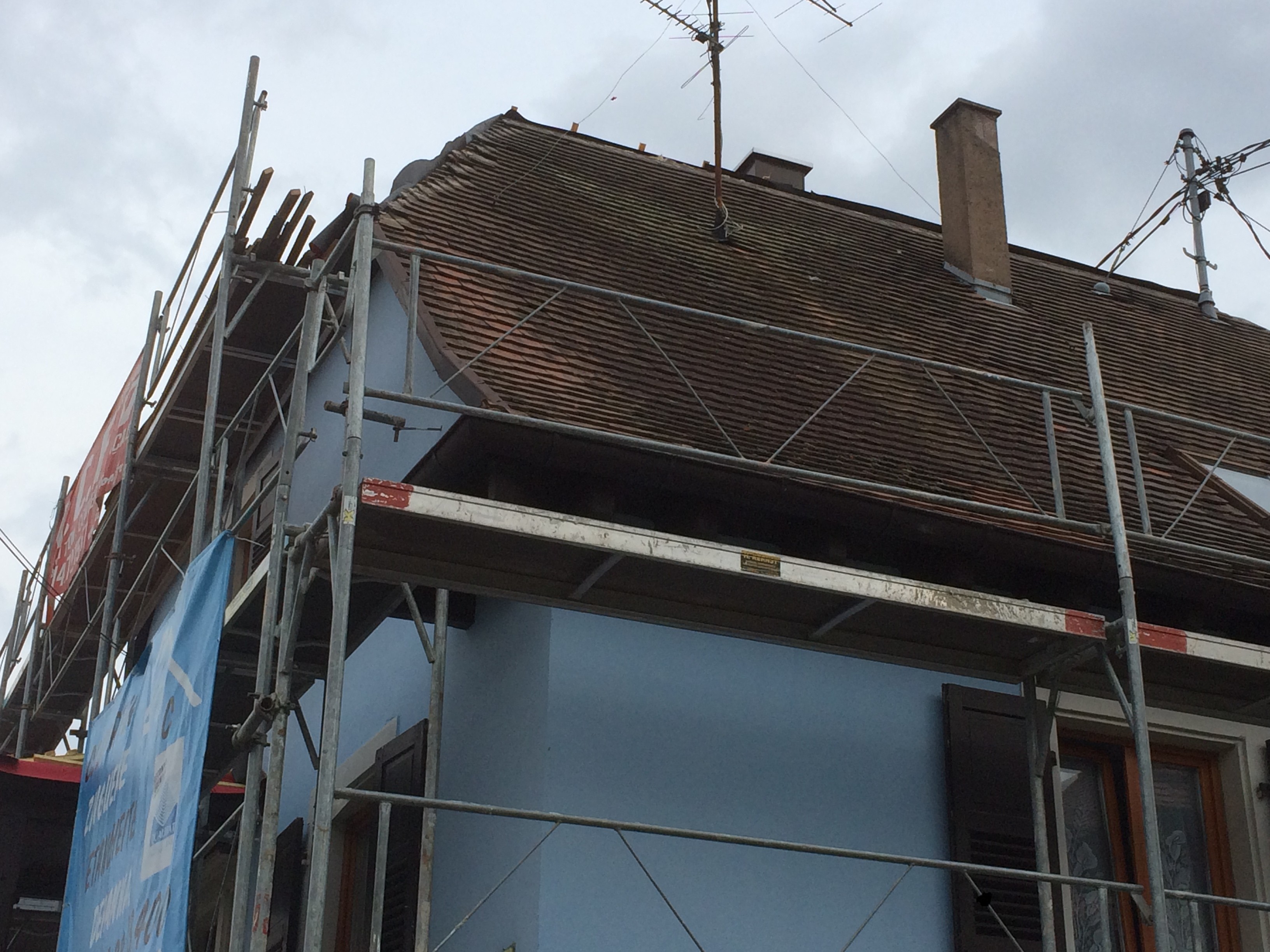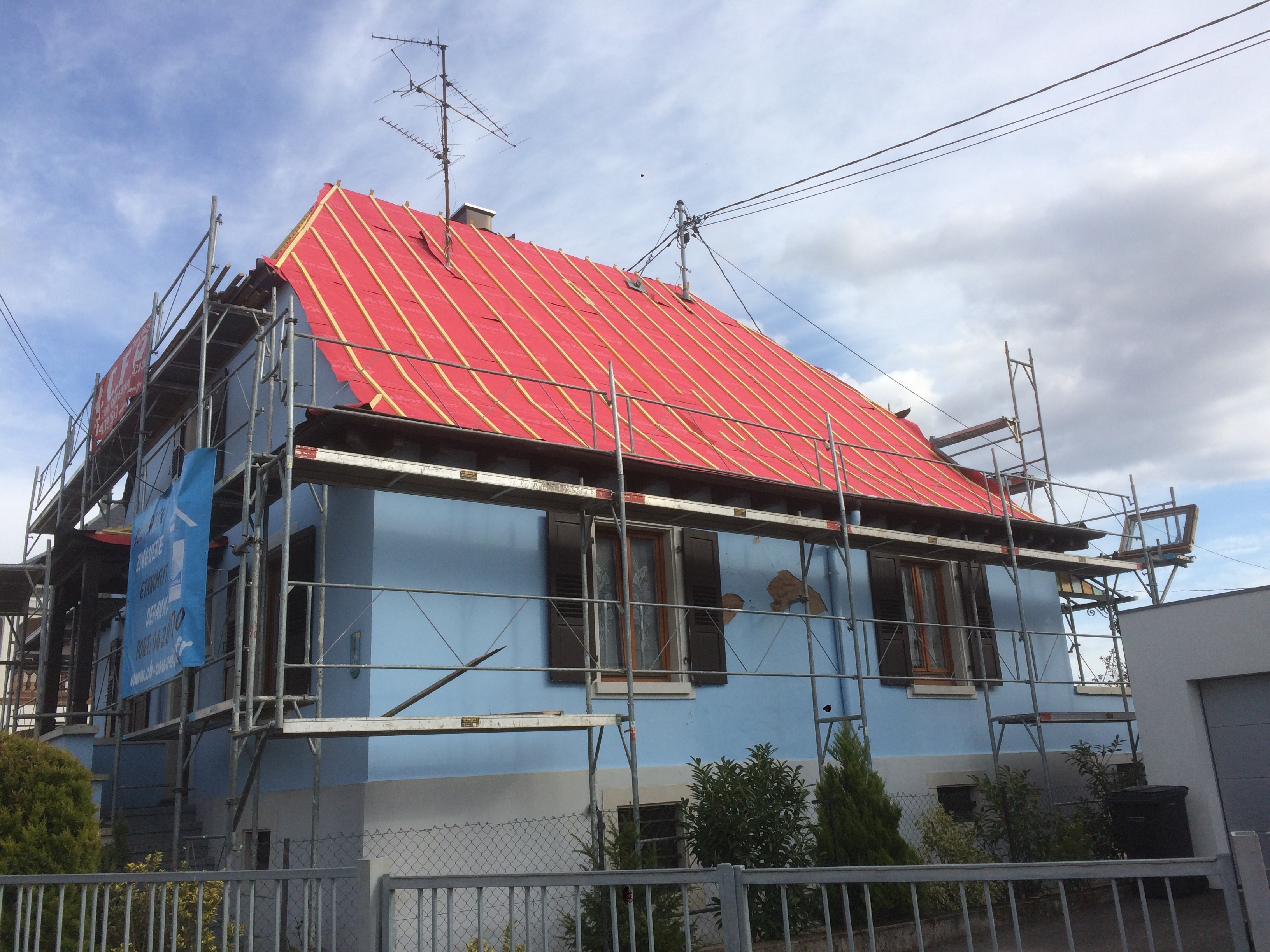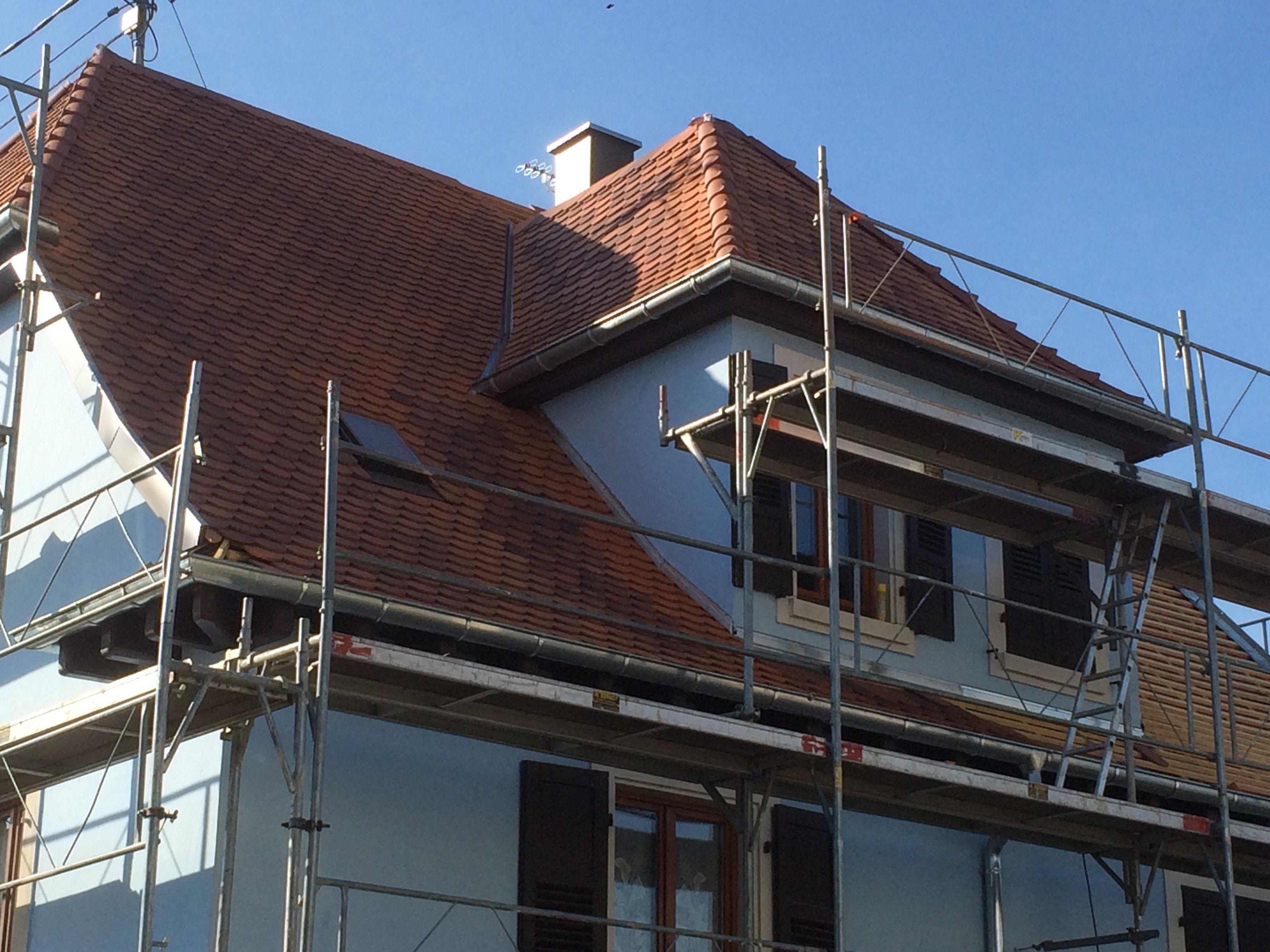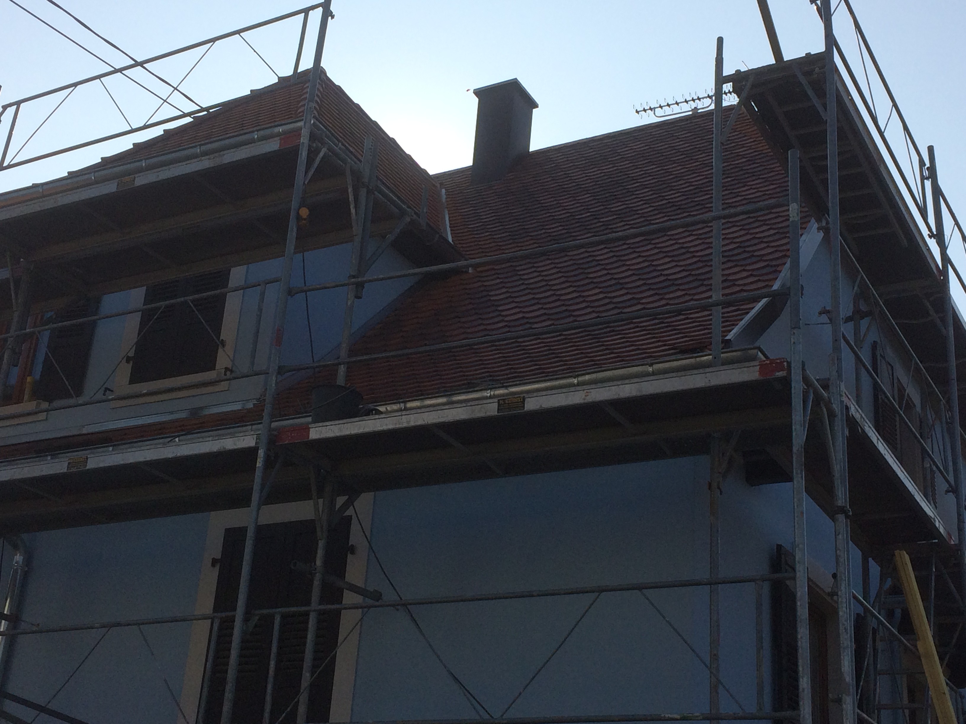 Ce chantier a été réalisé par CB Couverture pour une rénovation de toiture complète par de la tuiles plates nuancées avec mise en place d’un écran de sous-toiture.