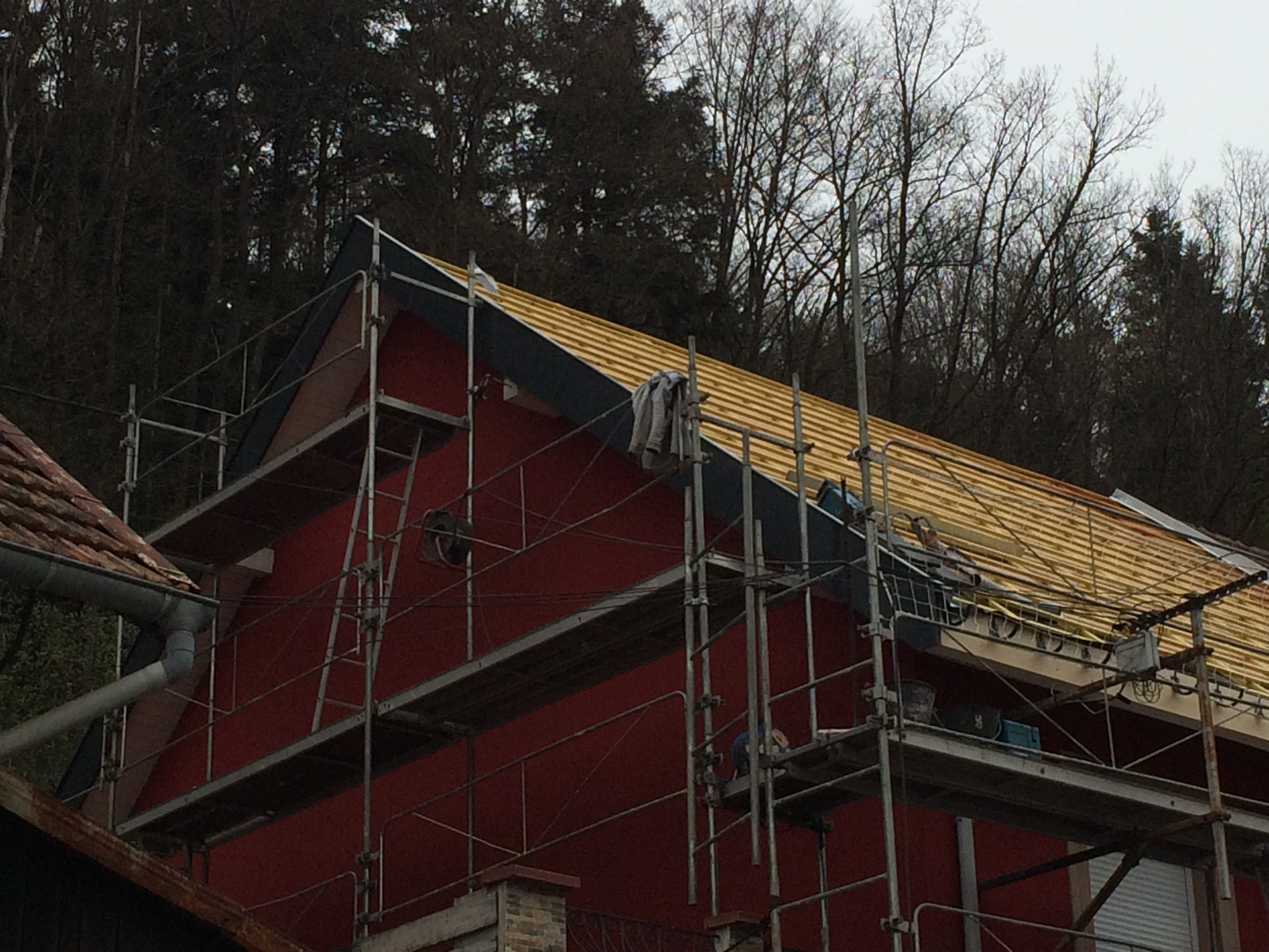 Une isolation ISONAT de 35 mm a été posée puis une tuile de type JURA NOVA ardoisée.